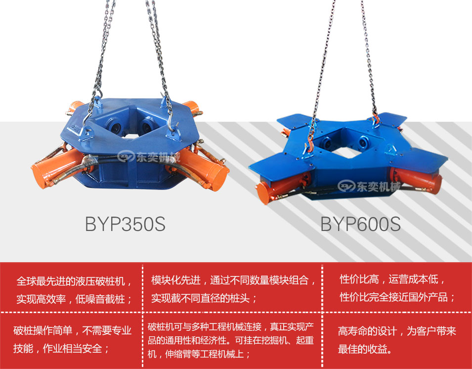 液壓破樁機截除:如灌注樁,預制樁等;從截樁頭成型形狀上分,可分為圓形破樁機和方形破樁機。破樁機在高鐵橋梁,工民建筑樁基工程中得到廣泛應用,一般方形截樁機適用于樁邊長250-650mm,可以滿足各類大型基礎施工的要求。