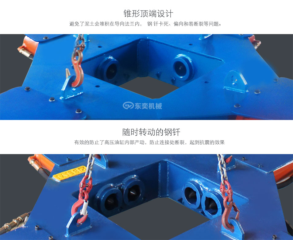 破樁機通過動力源給截樁機多個油缸提供壓力,油缸直接驅動釬桿,同時擠壓樁身,使樁頭截除。破樁機施工過程中,操作簡單,高效率,低噪音,低成本,適用于樁群施工工程中。破樁機采用高度模塊化組合,通過銷軸聯接模塊,可以通過不同模塊數量組合,截除一定范圍內直徑樁頭。